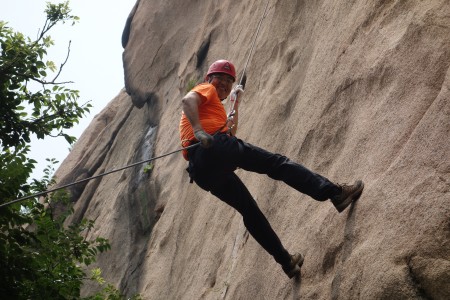此次拓展訓(xùn)練營(yíng)在日照九仙山風(fēng)景區(qū)展開?;顒?dòng)一開始,通過簡(jiǎn)單的互動(dòng)趣味游戲,整個(gè)團(tuán)隊(duì)迅速打破隔閡,家人們都以輕松的心態(tài)投入其中。接下來就是驚險(xiǎn)刺激的個(gè)人挑戰(zhàn)賽--懸崖速降。陡峭高聳的巖石,六十米高的懸崖落差,大家內(nèi)心充滿新奇與恐慌。 在同伴的鼓勵(lì)及教練的保護(hù)下,大家鼓足勇氣,鎮(zhèn)定從容的面對(duì)風(fēng)險(xiǎn),從自我激勵(lì)、自我控制到超越自我,最終走向了成功。
