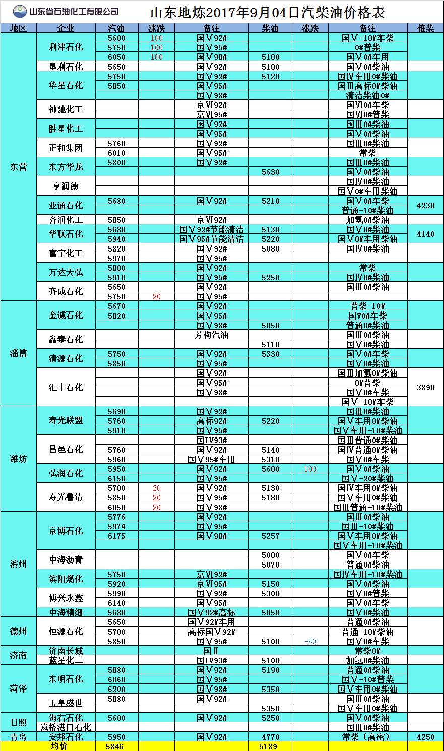山東地?zé)?017年9月04日汽柴油價(jià)格表
