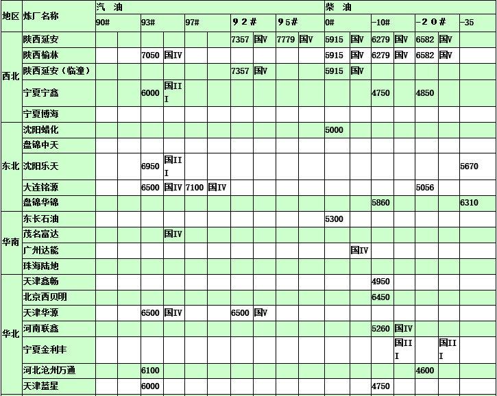國(guó)內(nèi)煉廠2015年3月5日汽柴油價(jià)格表