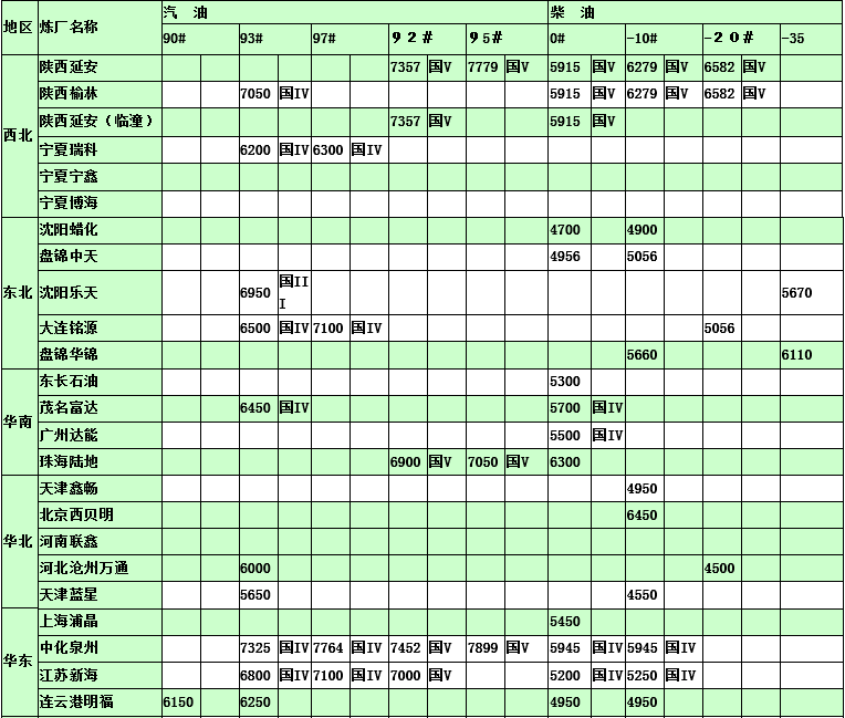 國(guó)內(nèi)煉廠2015年3月9日汽柴油價(jià)格表