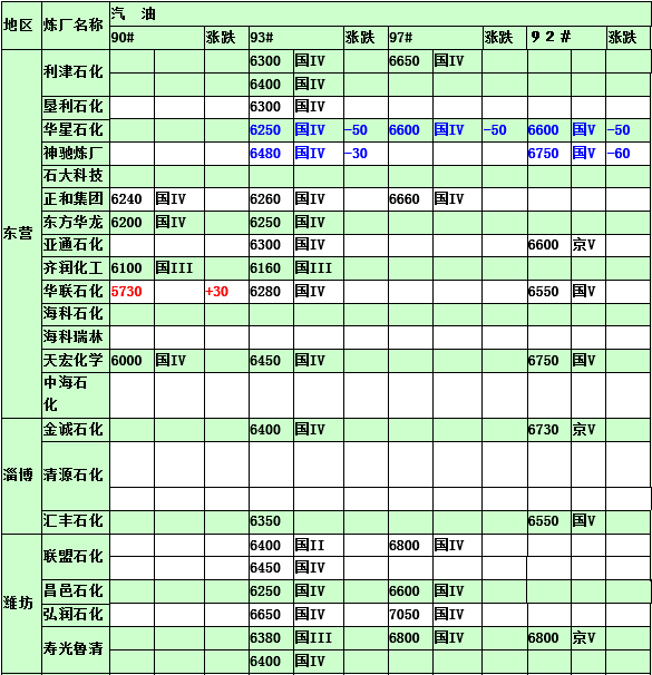 國(guó)內(nèi)煉廠2015年4月2日汽柴油價(jià)格表