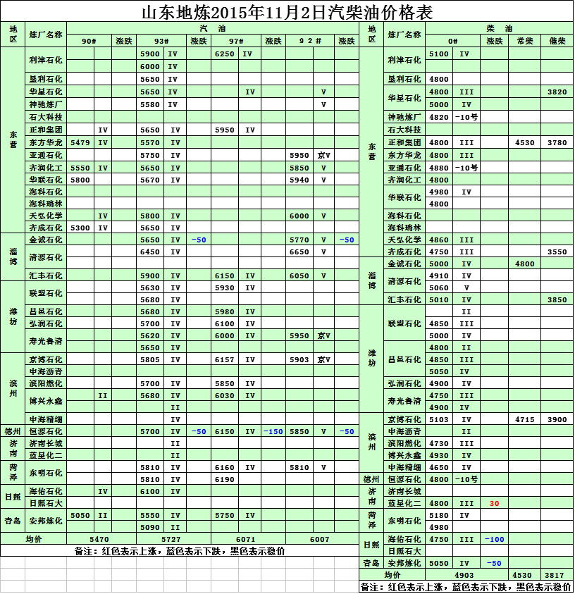 2015年11月2日山東地?zé)捚裼蛢r(jià)格表