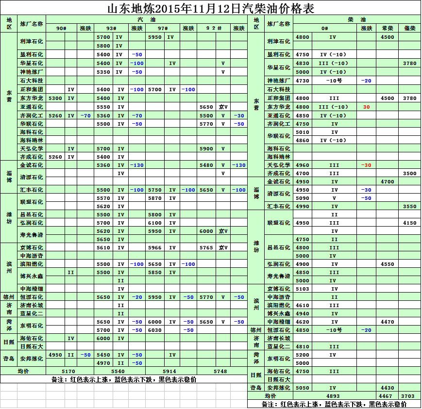 2015年11月12日山東地?zé)捚裼蛢r格表