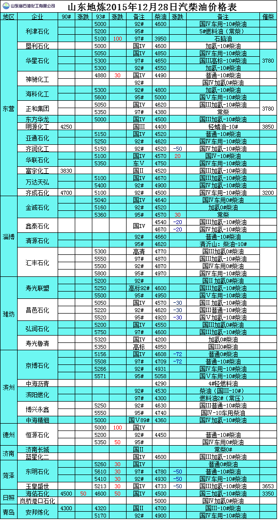 2015年12月28日山東地?zé)捚裼蛢r(jià)格表