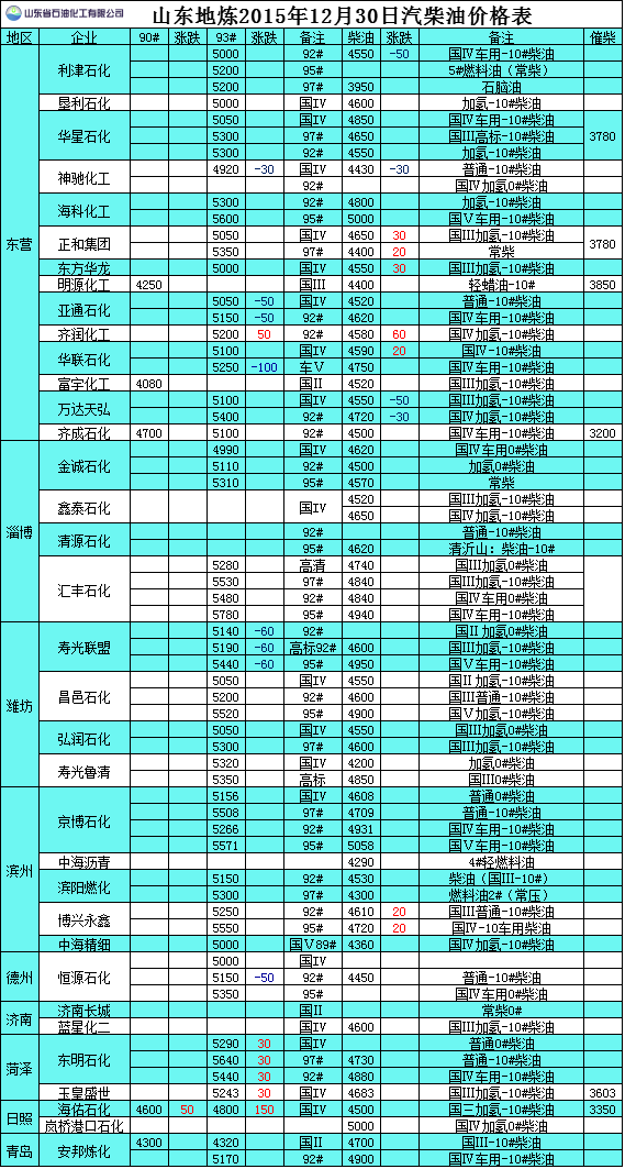 2015年12月30日山東地?zé)捚裼蛢r(jià)格表