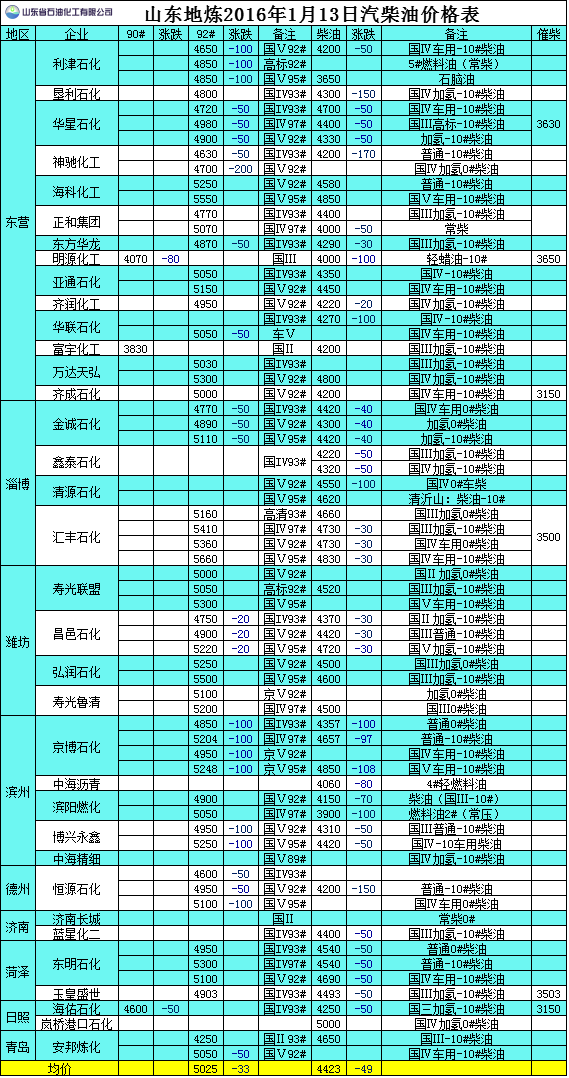 2016年1月13日山東地?zé)捚裼蛢r(jià)格表