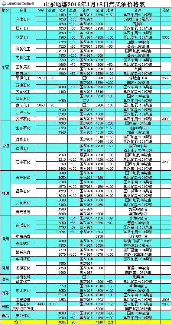 2016年1月18日山東地?zé)捚裼蛢r(jià)格表
