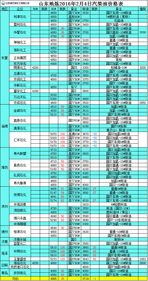 2016年2月4日山東地?zé)捚裼蛢r(jià)格表