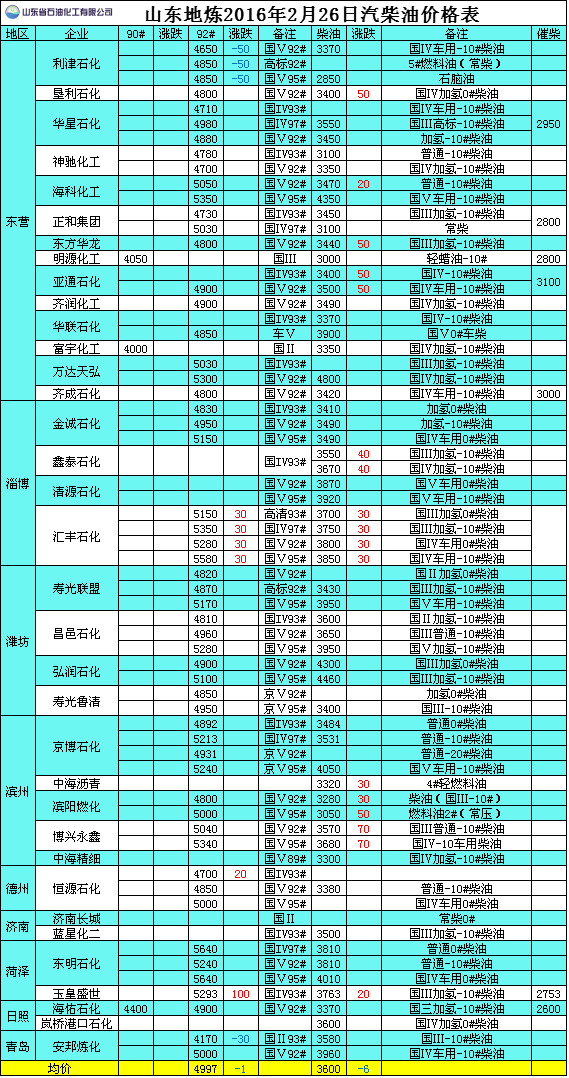 2016年2月26日山東地?zé)捚裼蛢r(jià)格表