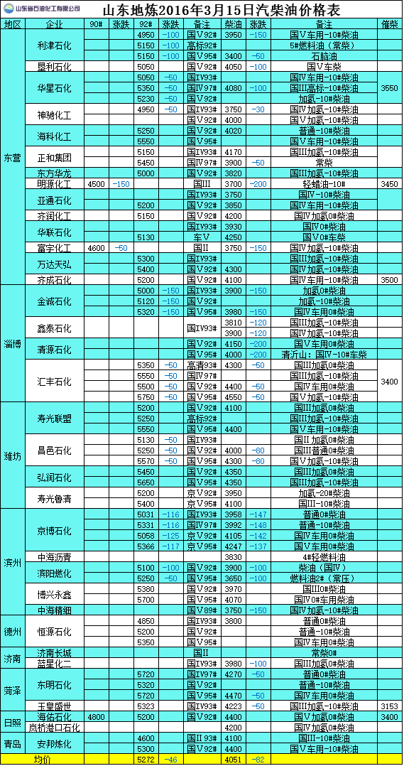 2016年3月14日山東地?zé)捚裼蛢r(jià)格表