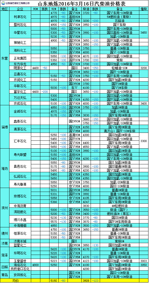 2016年3月16日山東地?zé)捚裼蛢r(jià)格表