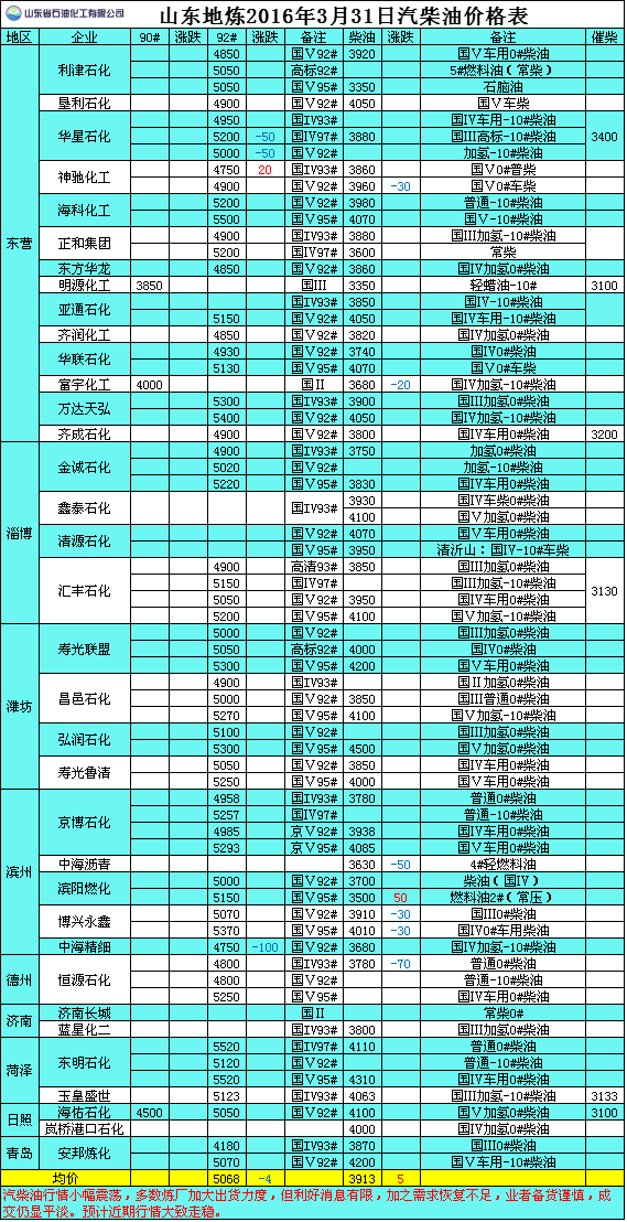 2016年3月31日山東地?zé)捚裼蛢r(jià)格表