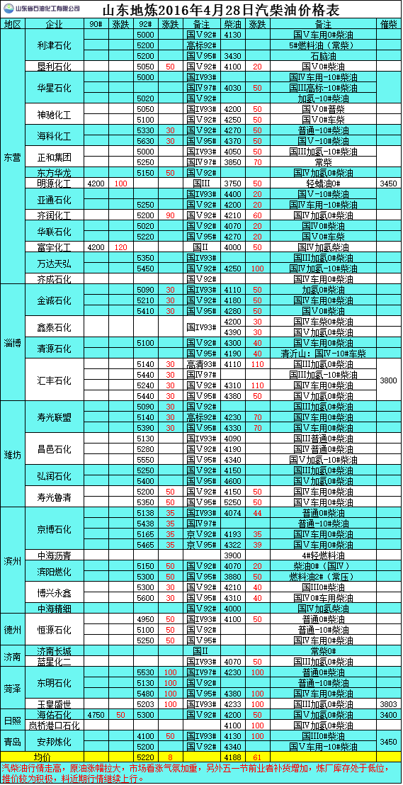 2016年4月28日山東地?zé)捚裼蛢r(jià)格表