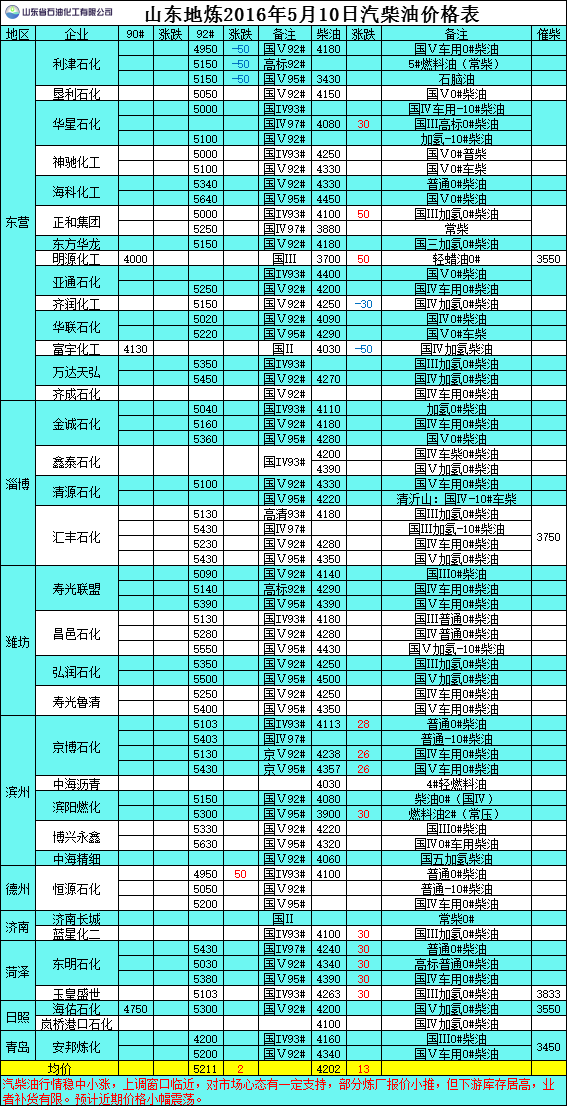 2016年5月10日山東地?zé)捚裼蛢r(jià)格表