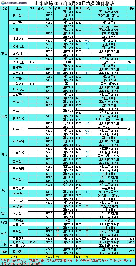 2016年5月20日山東地?zé)捚裼蛢r(jià)格表