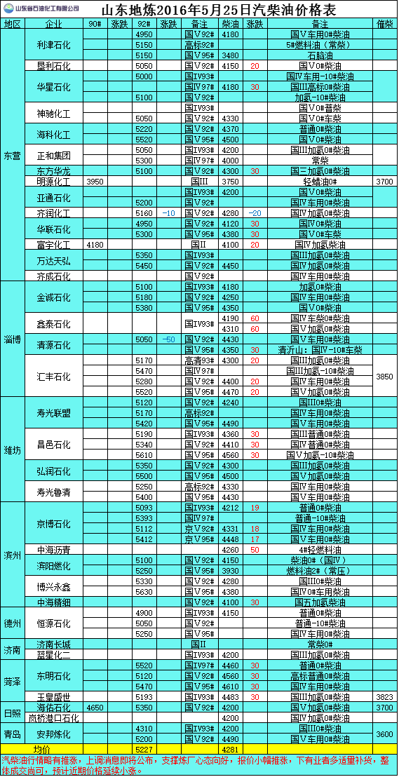 2016年5月25日山東地?zé)捚裼蛢r格表
