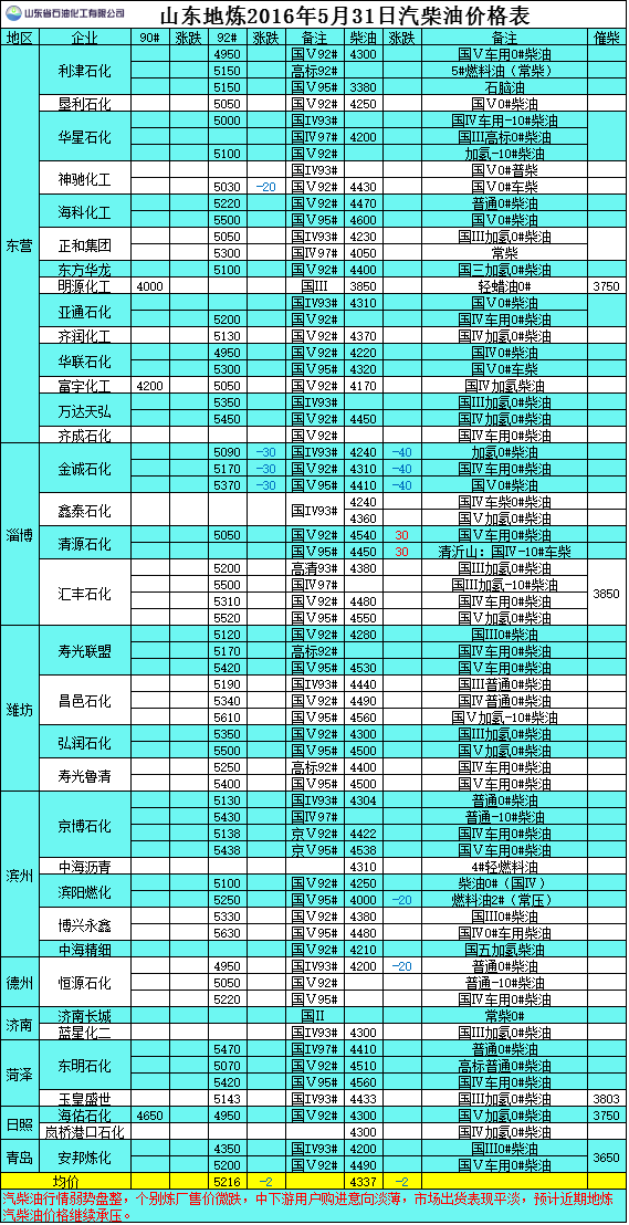 2016年5月31日山東地?zé)捚裼蛢r格表