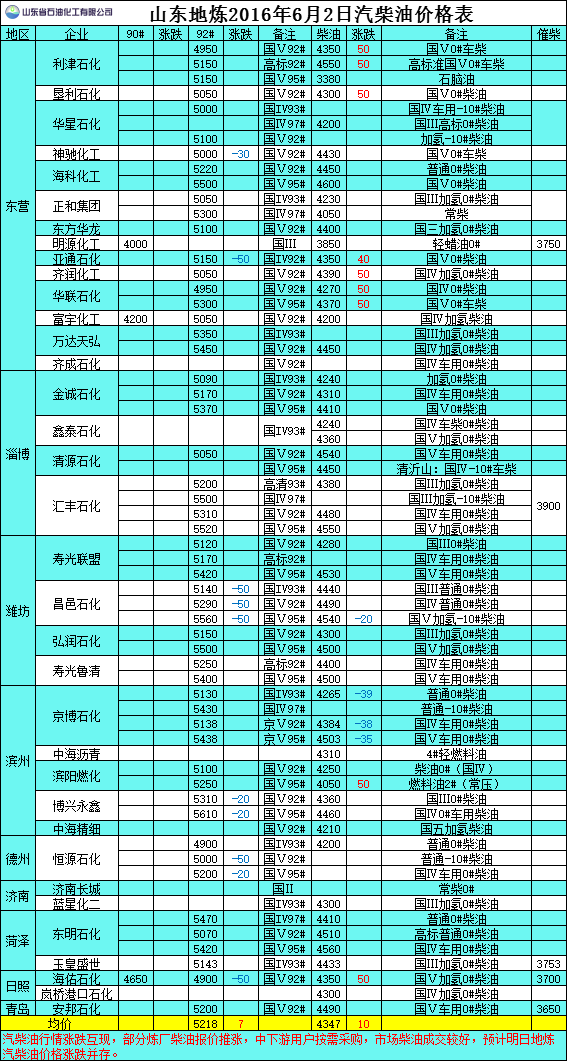 2016年6月2日山東地?zé)捚裼蛢r格表
