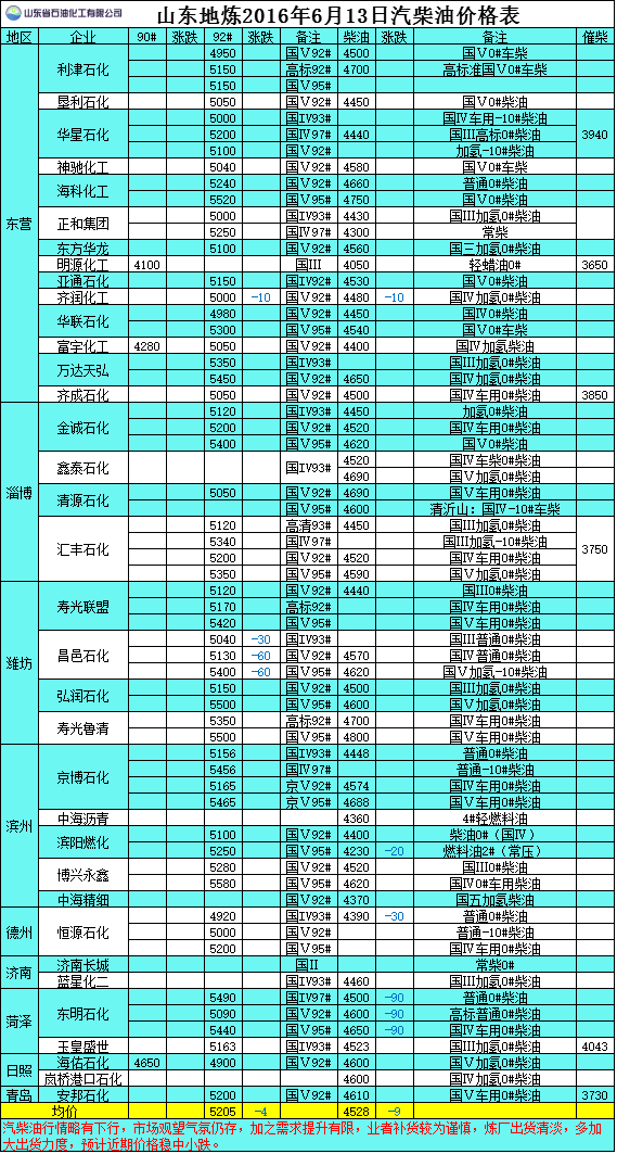 2016年6月14日山東地?zé)捚裼蛢r(jià)格表
