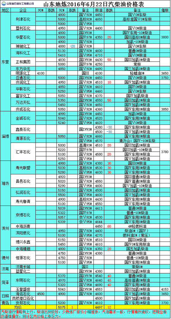 2016年6月22日山東地?zé)捚裼蛢r(jià)格表
