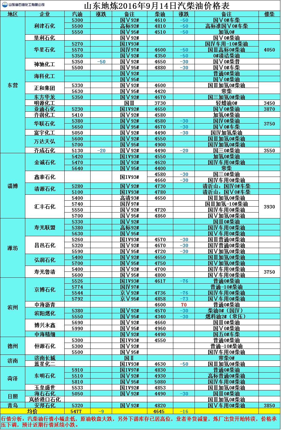 行情分析:汽柴油行情小幅走低,原油收盤大跌,另外下游庫存已居高位,業(yè)者補貨減量,煉廠出貨開始轉(zhuǎn)淡,價格承壓下調(diào),預(yù)計近期行情延續(xù)小跌。