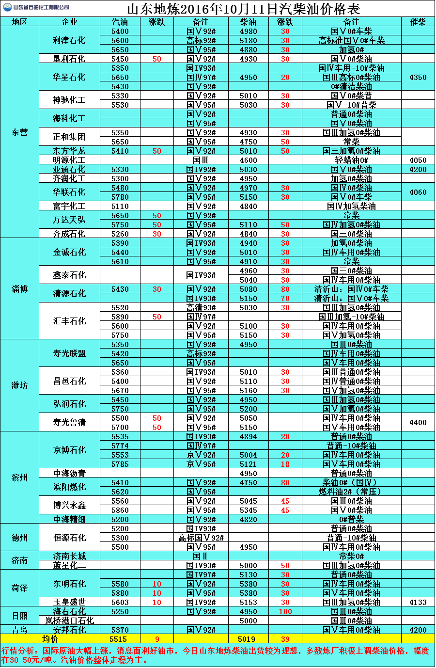 行情分析:國際原油大幅上漲,消息面利好油市,今日山東地?zé)挷裼统鲐涊^為理想,多數(shù)煉廠積極上調(diào)柴油價格,幅度在30-50元/噸。汽油價格整體走穩(wěn)為主。