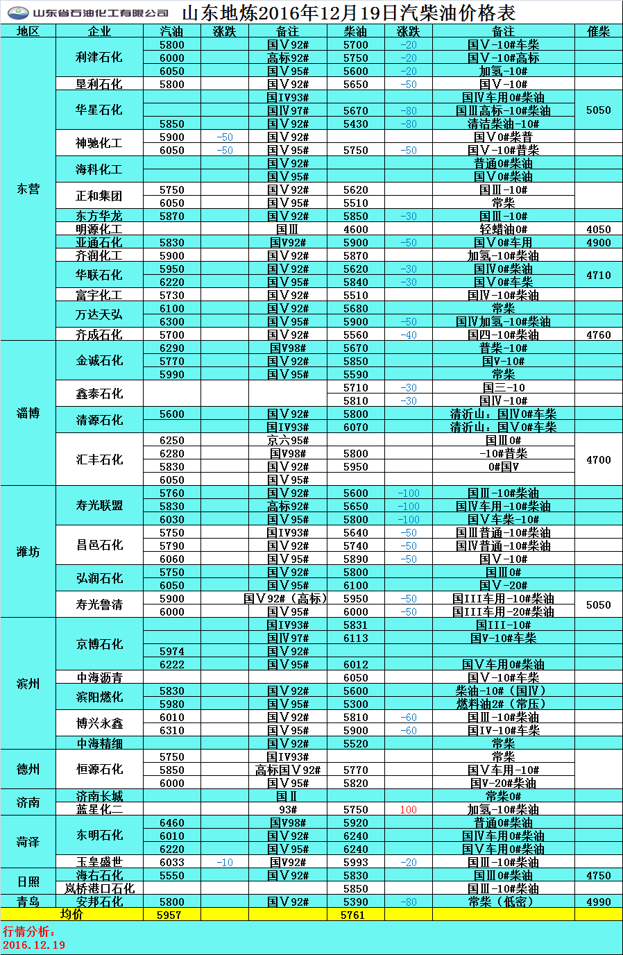 12月16日山東地煉汽柴油價格