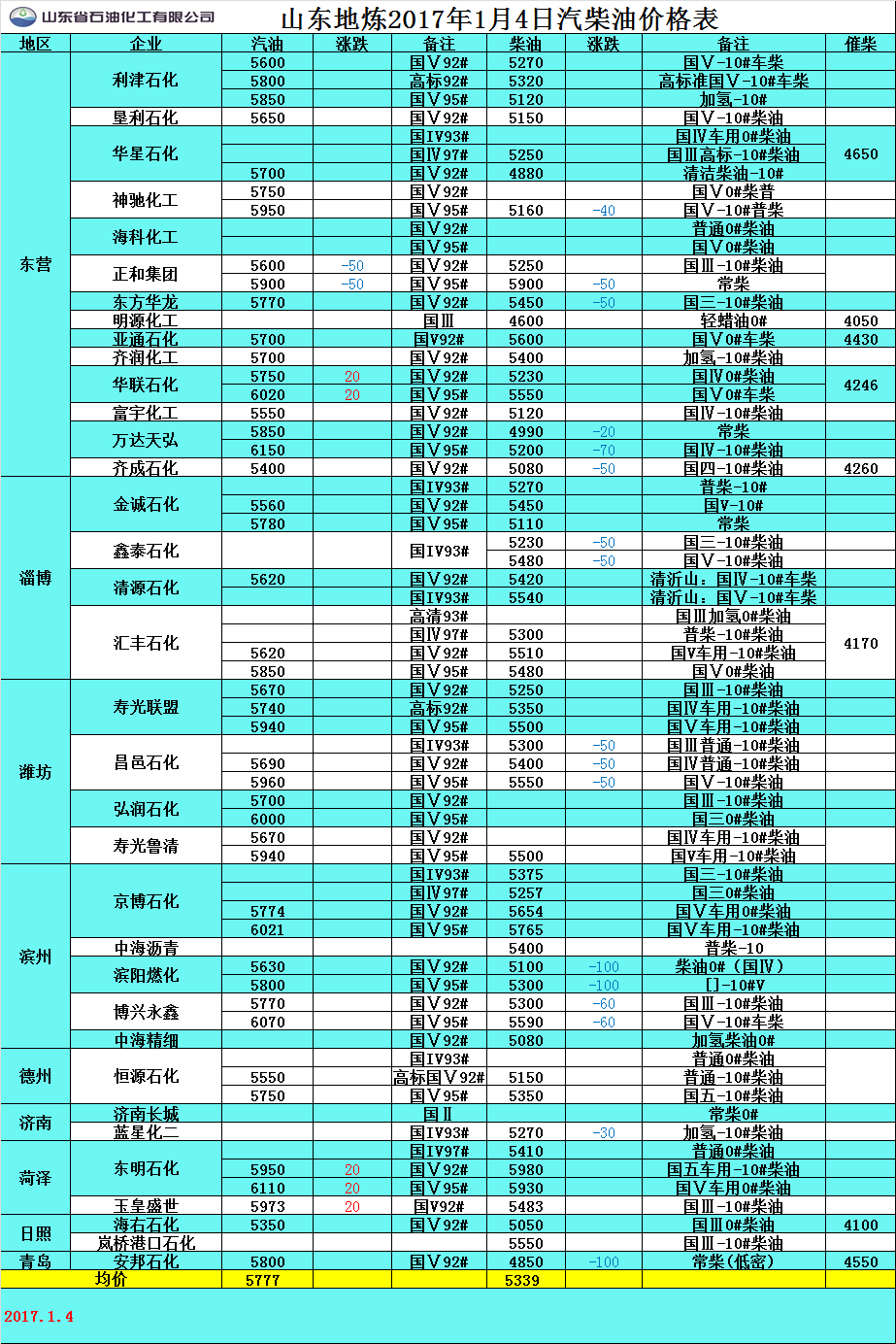 2017年1月4日山東地?zé)捚裼蛢r(jià)格