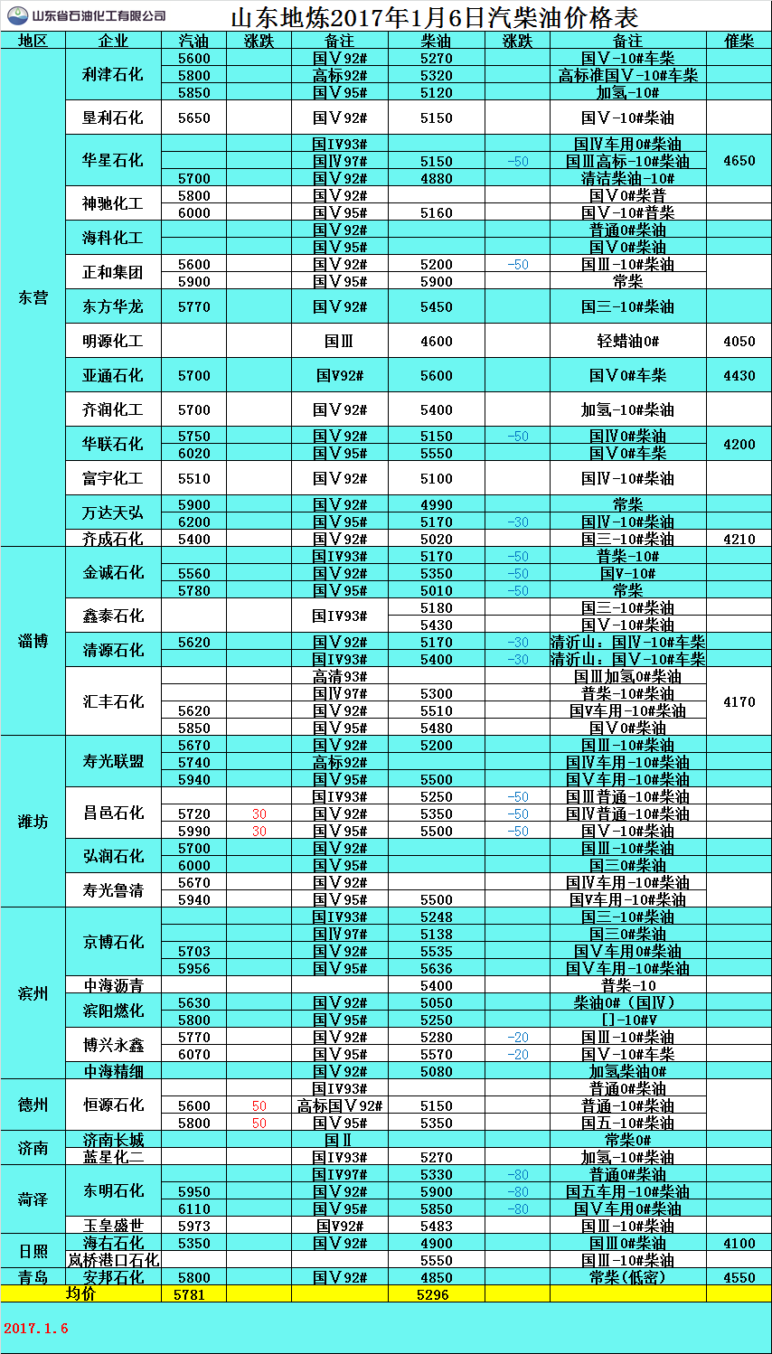 2017年1月6日山東地?zé)捚裼蛢r(jià)格