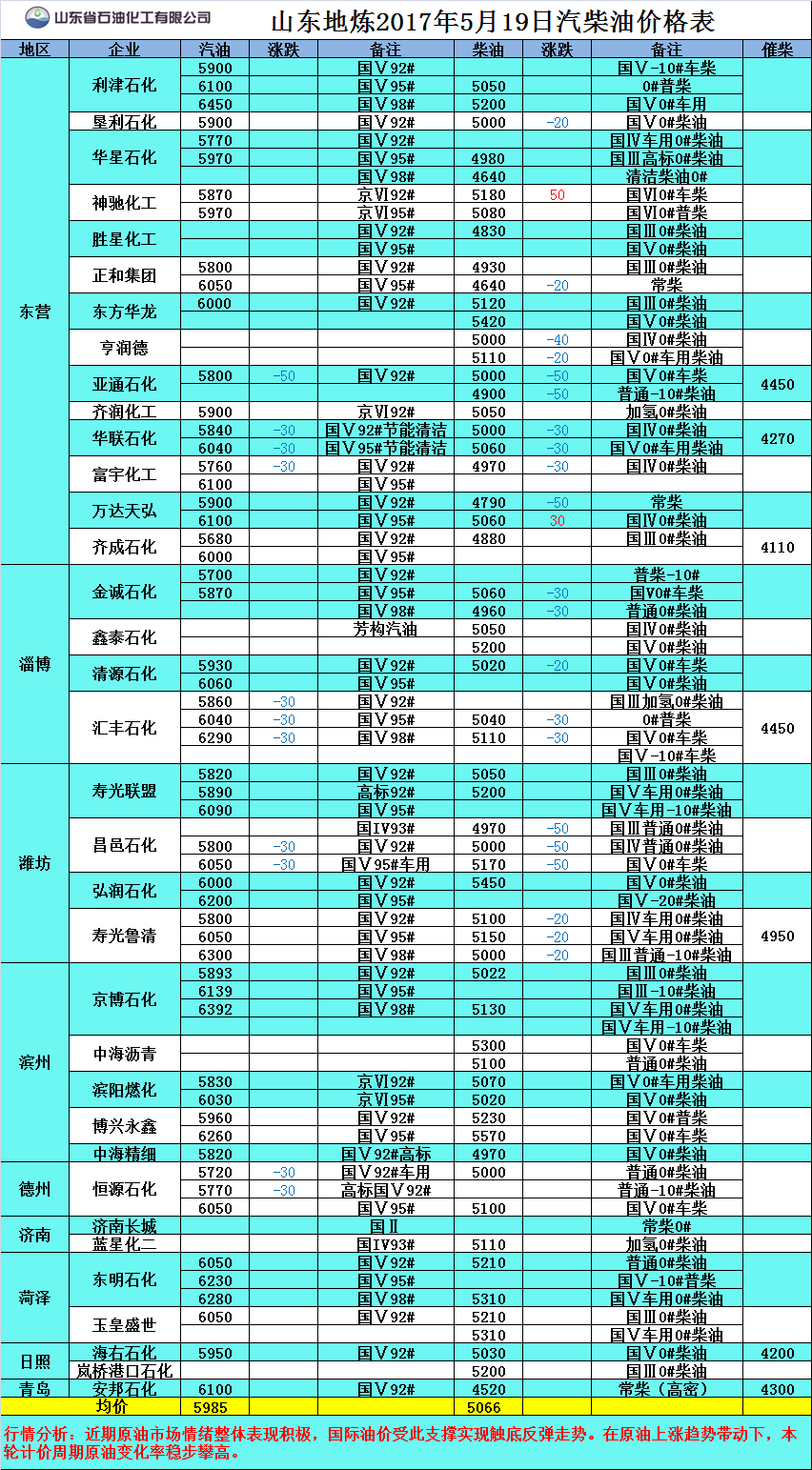 2017年5月19日山東地?zé)捚裼蛢r(jià)格
