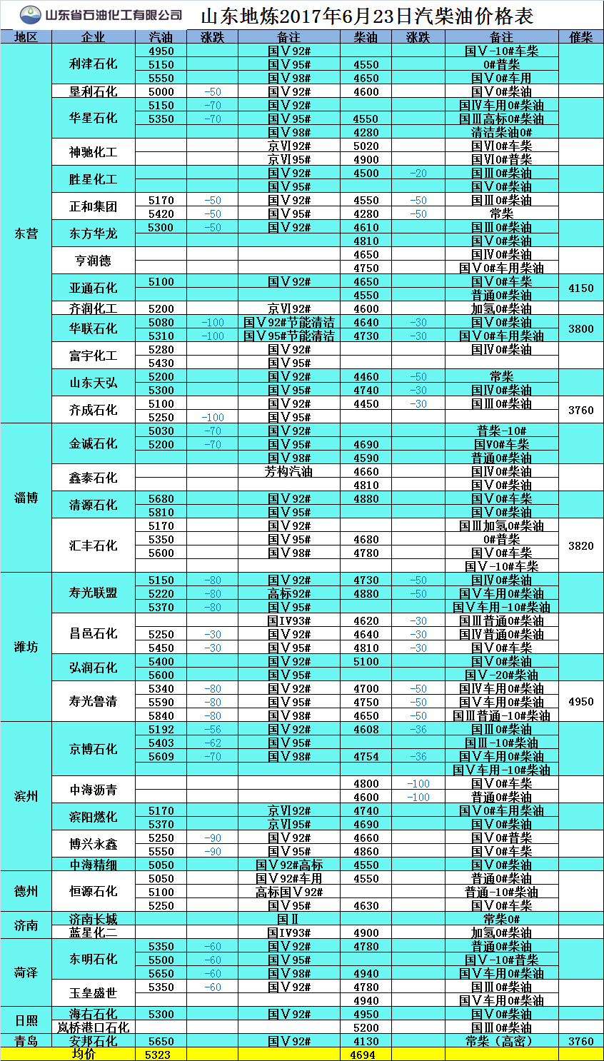 山東地?zé)?017年8月07日汽柴油價(jià)格表